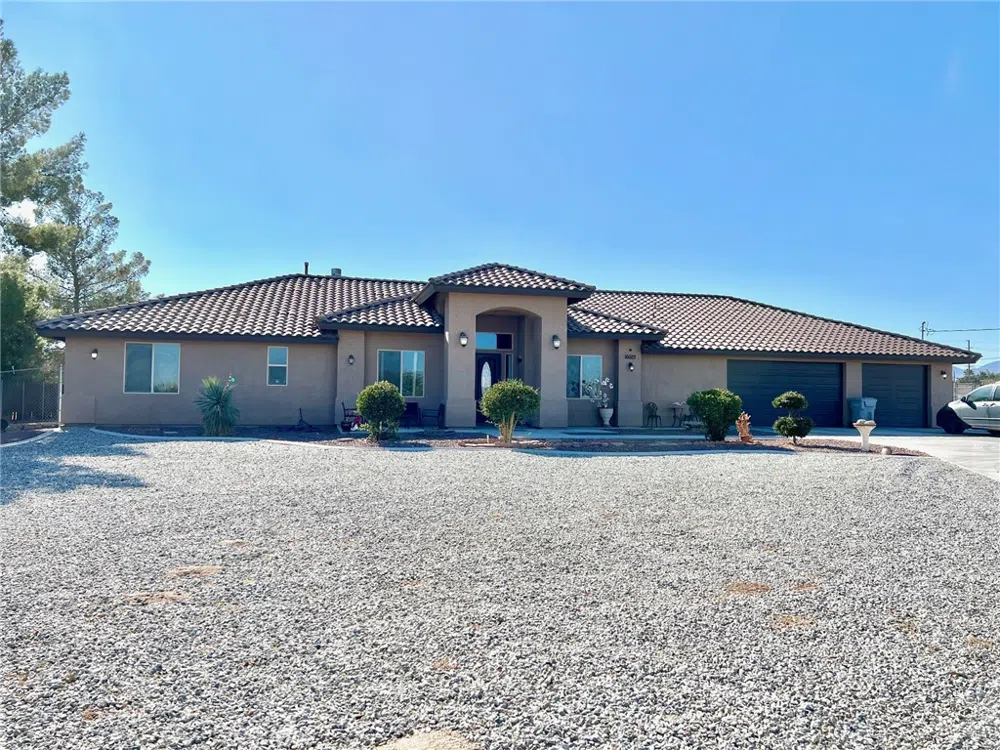 Welcome to this stunning 5-bedroom, 3.5-bathroom Mediterranean-style home, offering a 3,280 sq. ft. of single-level living on a sprawling 43,560 sq. ft. fully fenced lot in Hesperia. Built in 2014, this property boast a thoughtfully designed open and split floor plan, perfect for modern living. Step inside to discover a spacious great room that flows seamlessly into a chef's kitchen, ideal for entertaining or culinary adventures. The kitchen features granite countertops, rich redwood cabinetry, stainless steel appliances, and a convenient walk-in pantry. Two separate laundry rooms, one on each side of the house, and to the home's practicality and convenience. One of the standout features of this home is the charming casita located on the side of the house, offering privacy and versatility. Additionally, the expansive lot provides for a potential ADU ( Additional Dwelling Unit), making this property an excellent choice for multi-generational living or rental opportunities. Enjoy the perfect blend of style, comfort, and functionality in this remarkable home. Don't miss this rare opportunity to own a piece of Mediterranean-inspired elegance in the heart of Hesperia.
