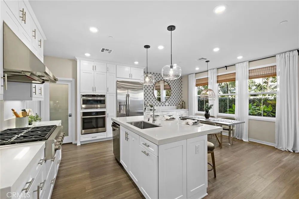 Welcome to 26 Paranza, located in the highly coveted Avant neighborhood of Rancho Mission Viejo, where modern luxury meets everyday comfort. Nestled on a festive, community-oriented street celebrated year-round for every holiday, this beautifully designed four-bedroom home offers a light-filled, contemporary living experience. The thoughtfully designed floor plan features a full bedroom and bath on the main level, ideal for guests or multigenerational living. Downstairs also showcases luxury vinyl plank flooring, expansive windows for abundant natural light, and a stunning chef’s kitchen complete with a large center island, walk-in pantry, built-in refrigerator, and seamless flow for entertaining. A custom buffet area with designer backsplash adds both function and style. Upstairs, you’ll find three spacious secondary bedrooms, a convenient upstairs laundry room, and a serene primary suite featuring a spa-inspired bathroom with a separate soaking tub and oversized walk-in shower. The tranquil backyard provides the perfect space to relax or entertain, while modern upgrades include a whole-house fan, paid-off solar, EV charger in the garage, and custom window coverings throughout. Every detail has been carefully curated to blend luxury, comfort, and efficiency. Enjoy all that Rancho Mission Viejo has to offer. As part of the Rancho Mission Viejo community, you'll enjoy access to an array of resort-like amenities. From sprawling pools and fitness centers to hiking trails, sports parks, arcade, coffee shop, community events, and so much more, there's always something to explore and enjoy.
